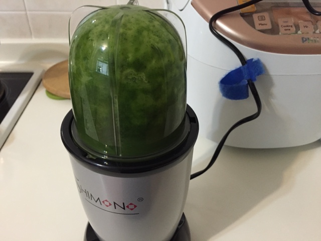 1. Blend 18g of pandan leaves with 50g of water into a smooth paste. Collect 25g of the purée from it.