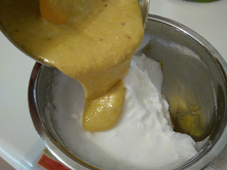 8. Pour (7) back to combine with the remaining meringue. Fold to combine into a smooth batter.
