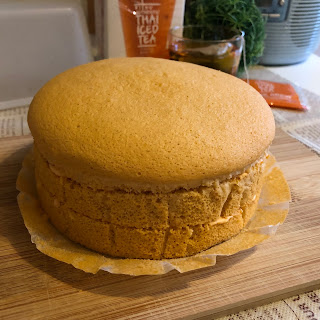 Thai Tea is not a strong flavour ingredient except its intense colour. So the cake only carried a very mild Thai Tea aroma. To strengthen the aroma, I just spread some Thai Tea flavour ermine cream in between the cake layers - not very strong but really improved the flavour. The ermine cream uses tea roux to replace part of the whipped cream to make it lighter in terms of fat content. Therefore, overall this can be considered as a light dessert 🍰